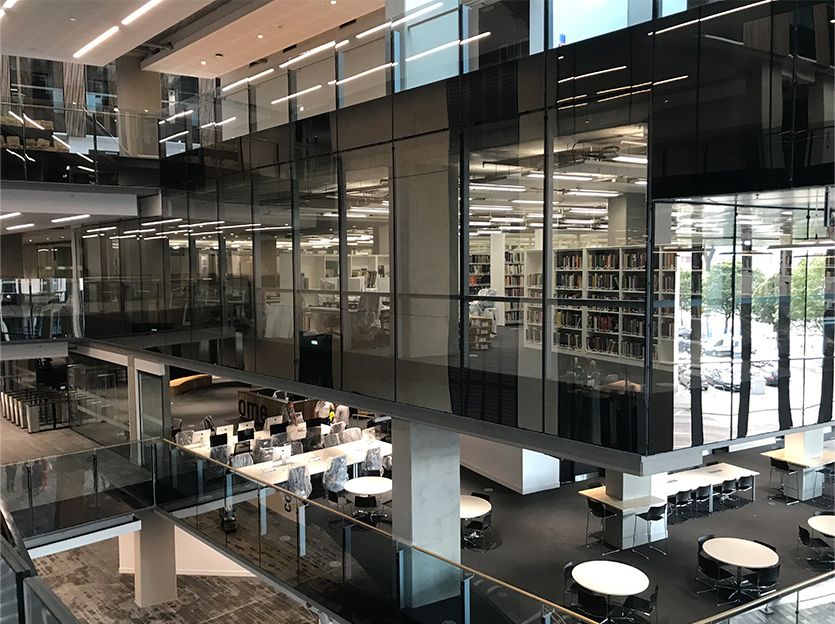 The new building of the Ulster University Belfast campus, built by Sacyr, has a 75,000 m2 surface and includes five atriums. 22,000 m2 of glass were used in its construction to make it a luminous and open building.