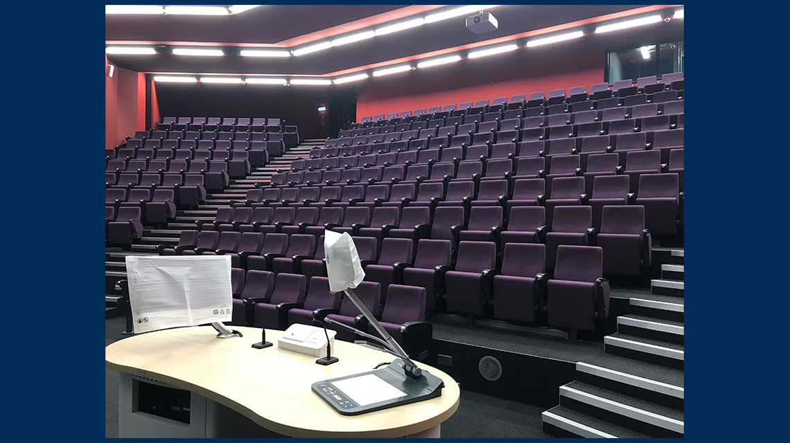 The facilities include more than 300 learning spaces, 2 lecture theatres with 350 and 250 seats respectively, 18 elevators, a two-story library and private study sections which can accommodate up to 500 students, a biometric laboratory, nine catering outlets including a rooftop café.