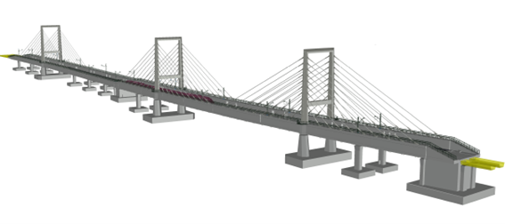 The viaduct is 482 meters long and allows to cross over the Urumea River through two cable-stayed sub-structures with maximum spans of 67 and 120 meters.