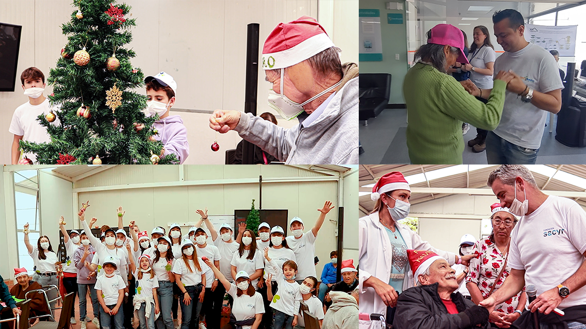 Los voluntarios del club de voluntariado de la Fundación Sacyr, en Colombia, colaboran para que los abuelos que se encuentran en situación de abandono no pierdan la ilusión en estas fechas.