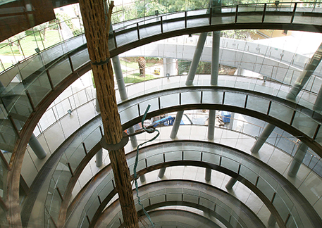 Este espacio polivalente luce una arquitectura de hormigón armado de inspiración futurista. Se trata del primer proyecto en el que empleamos tecnología BIM, Building Information Modeling, que imita el proceso real de la construcción. Esta tecnología emplea un software paramétrico para modelar construcciones en 3D y hacer simulaciones en 4D (tiempo), 5D (costes) y 6D (sostenibilidad energética).