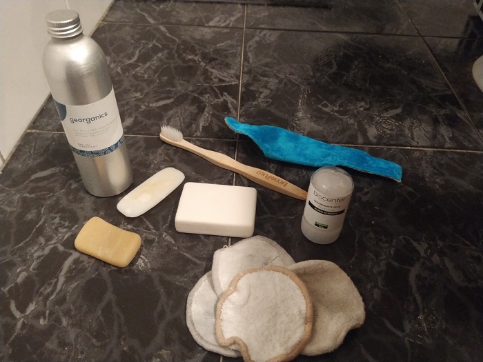 Los dientes, me los lavo siempre con cepillo de bambú, y pasta de dientes en polvo, que dura más y contamina menos. También utilizo pasta de dientes con ingredientes de origen vegetal, así como hilo dental con xilitol natural. Por cierto, un buen colutorio es el oil pulling, totalmente natural, hecho con aceite de coco habitualmente, y que contamina menos, y hace menos daño a los dientes que los colutorios habituales. En cuanto al desodorante, utilizo uno de piedra de alumbre.