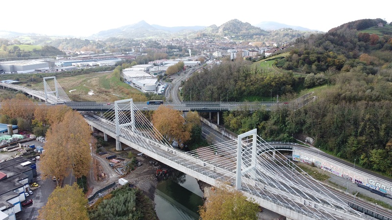 Tiene 482 metros de longitud, posibilita dos cruces sobre el río Urumea y pasa por debajo de la A-15 mediante dos subestructuras atirantadas con vanos máximos de 67,2 y de 120 metros. Son necesarios 108 tirantes para soportar el tablero de 14,5 metros de ancho y con un canto variable de hasta cuatro metros.