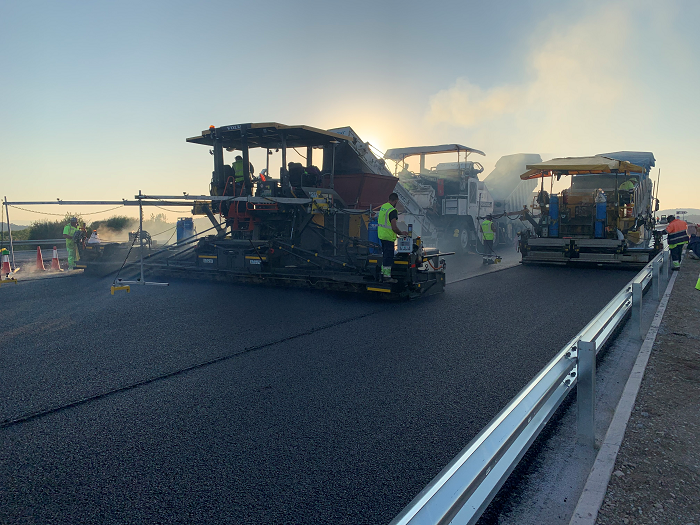 Este logro ha sido posible gracias al trabajo conjunto de todo el equipo de la obra con el parque de maquinaria, en especial el personal de fabricación y extendido, del que la gerencia del contrato ha resaltado su profesionalidad y dedicación.