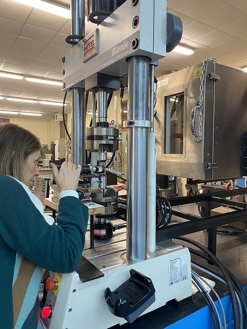“Nuestro interés se centra en los ensayos para poder caracterizar todos los parámetros que me describen ese proceso. Luego mediante modelos que los recojan poder aplicarlo a un elemento estructural. Es lo que llamamos a veces un ensayo virtual”, explica Covadonga. “El analizar un proceso de rotura desde un nivel microscópico nos permite saber qué microestructuras son mejores o peores.”