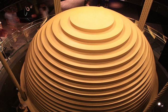 El rascacielos Taipei 101 tiene un péndulo en la parte superior de la estructura. Crédito: Wikimedia Commons.