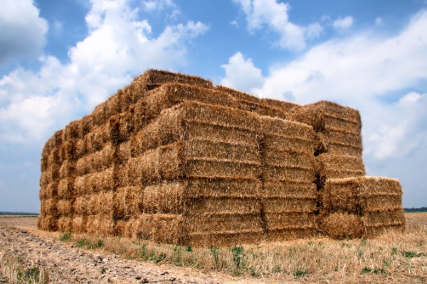 La producción de fardos de paja y su transporte para la construcción de viviendas requiere mucha menos energía que otros procesos constructivos. Crédito: Wikimedia Commons.