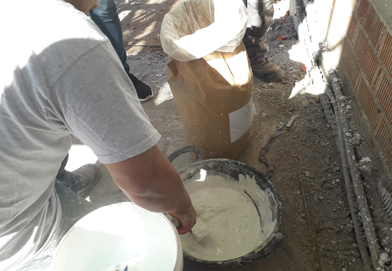 Este material, llamado CO2atings, es un mortero para revestimientos que ha sido testado en un entorno de obra de unas de nuestras edificaciones en Barcelona.