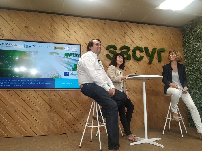A continuación, Juan Pablo Antillera, Director Técnico de Tratamiento de Residuos, Sacyr Circular y Paloma Mingo, Gestora de proyectos de I+D de Valoriza, presentaron el proyecto Microuwas-BIO. Se trata de un proyecto cuyo objetivo es el diseño y desarrollo de un nuevo digestor anaerobio, a pequeña escala, para identificar y analizar las poblaciones de microorganismos intervinientes. De esta forma, se consigue un control biotecnológico hasta ahora inexistente. El objetivo final es incrementar el caudal de producción de biogás y su calidad, reducir la cantidad de rechazo que se destina a vertedero y disminuir su reactividad biológica y química.