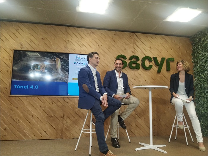 Por último, la sesión se cerró con Pablo García del Campo, Director Técnico de CAVOSA, y Miguel Martín Cano, Gestor de Proyectos Innovación y Conocimiento de Sacyr Ingeniería e Infraestructuras. Nos hablaron del proyecto Tunel 4.0, una iniciativa que tiene como objetivo la mejora del proceso constructivo de túneles a través de cuatro líneas de actuación: empleo de la tecnología live en el envío de voz y datos a través de la iluminación del túnel; la sensorización de la maquinaria para el análisis predictivo y monitorización de la máquina; el desarrollo de sistemas de posicionamiento en tiempo real de la excavación; y el desarrollo de aplicaciones web para automatizar el cálculo.