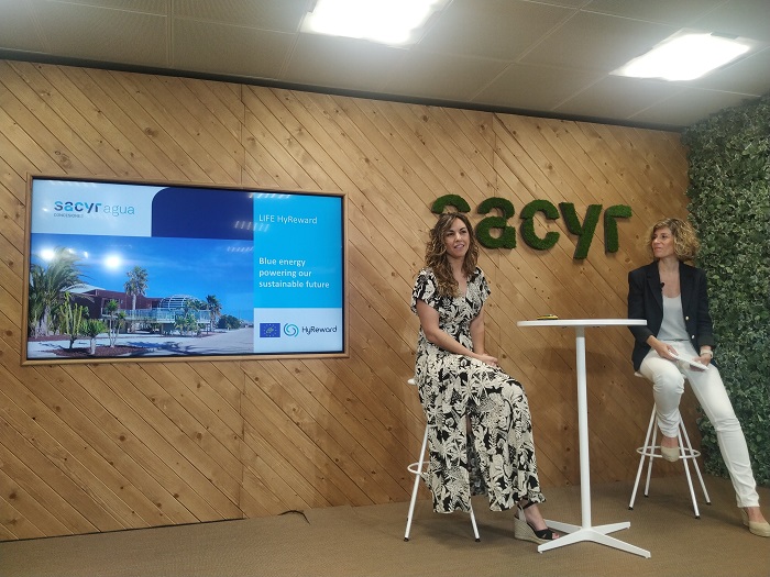 Patricia Terrero, Responsable de I+D+i de Sacyr Agua, presentó el proyecto Life HyReward. Su finalidad es explorar la generación de energía eléctrica a partir de la salmuera producida en el proceso de desalación para mejorar la sostenibilidad del proceso. El proyecto tiene como objetivo evaluar la viabilidad de un nuevo proceso de desalación más sostenible que combine la ósmosis inversa, proceso de desalación de agua en el que, utilizando membranas que no dejan pasar la sal, se inyecta agua a presión, y la electrodiálisis inversa, que es la generación de energía eléctrica a partir del gradiente salino entre dos disoluciones de diferente salinidad (por ejemplo, agua de mar y agua dulce).