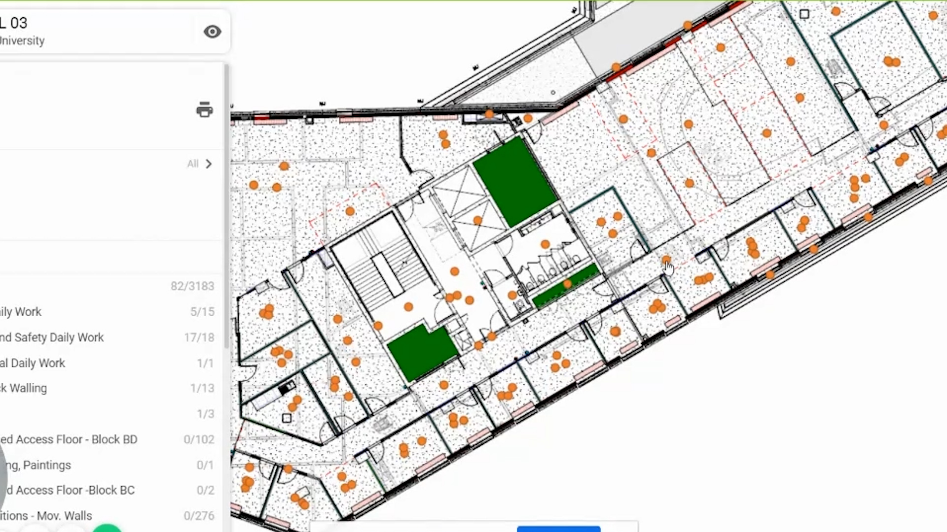 Sacyr está aplicando Dalux en la construcción de la Universidad de Ulster (Irlanda del Norte). “A través de Dalux es posible acometer con dicho control el mantenimiento de una interacción directa con el equipo de trabajo en obra. Nos permite anticiparnos a posibles errores logísticos y detectar vicios ocultos que pueden aparecer durante la ejecución de las diferentes fases constructivas”, subraya Cruz Pedronho. Además, Sacyr realiza a su vez el control de la calidad de todos los procesos constructivos.