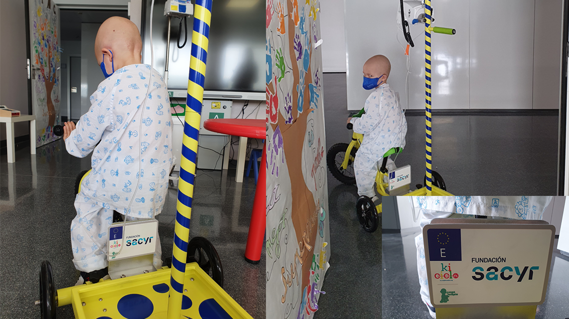 Juegaterapia construye zonas de juegos en las azoteas de los hospitales, donde los niños se olvidan durante un tiempo dónde están. En estos centros, se puede ver a niños recorriendo los pasillos con unos triciclos portasueros, con la quimio que reciben, estos son conocidos como Kiciclos, dos de ellos cuentan con la matrícula de la Fundación Sacyr. Con ellos apoyamos el eslogan de Juegaterapia: “La quimio jugando se pasa volando”.