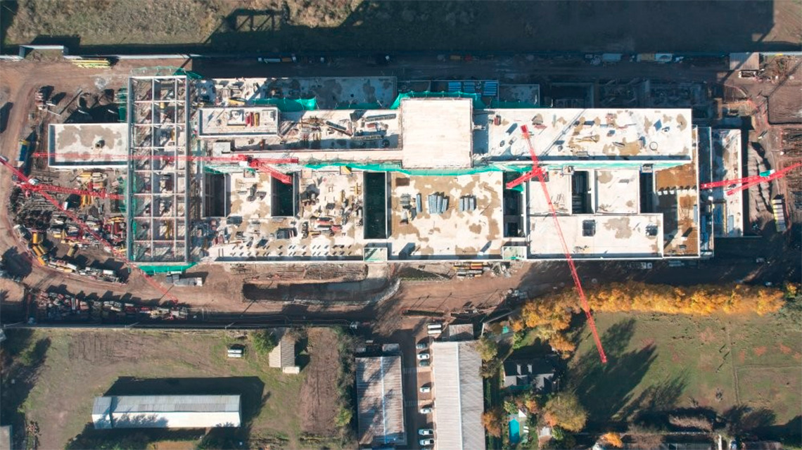 The construction of this healthcare facility Cardiff (Wales, UK), has reached a significant milestone: we have completed its main structure. The construction team and the local authorities celebrated the symbolic topping out event.